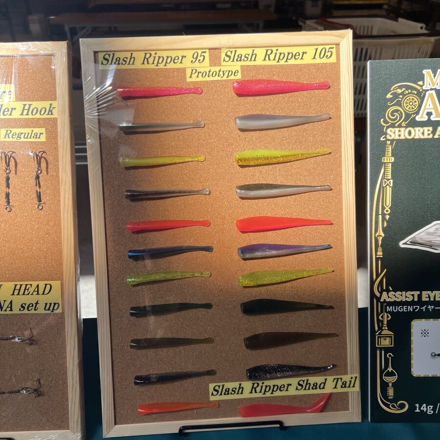 今回の目玉はヒラメワームの新製品『Slash Ripper 95/105』と鮭勝のNEWカラー!!