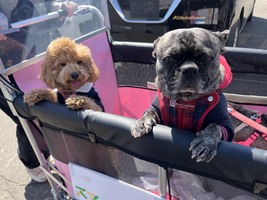 すれ違う方からのかわいいと言う言葉が聞こえると、ひょこっとお顔を出す園児たちでした(笑)