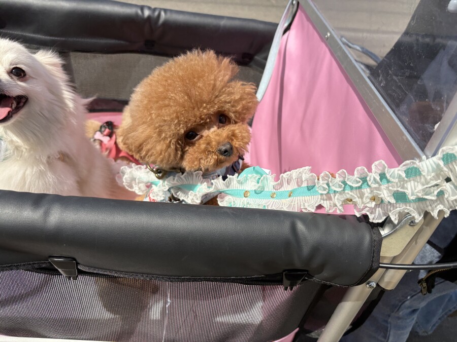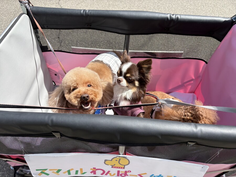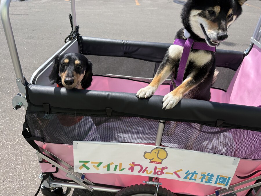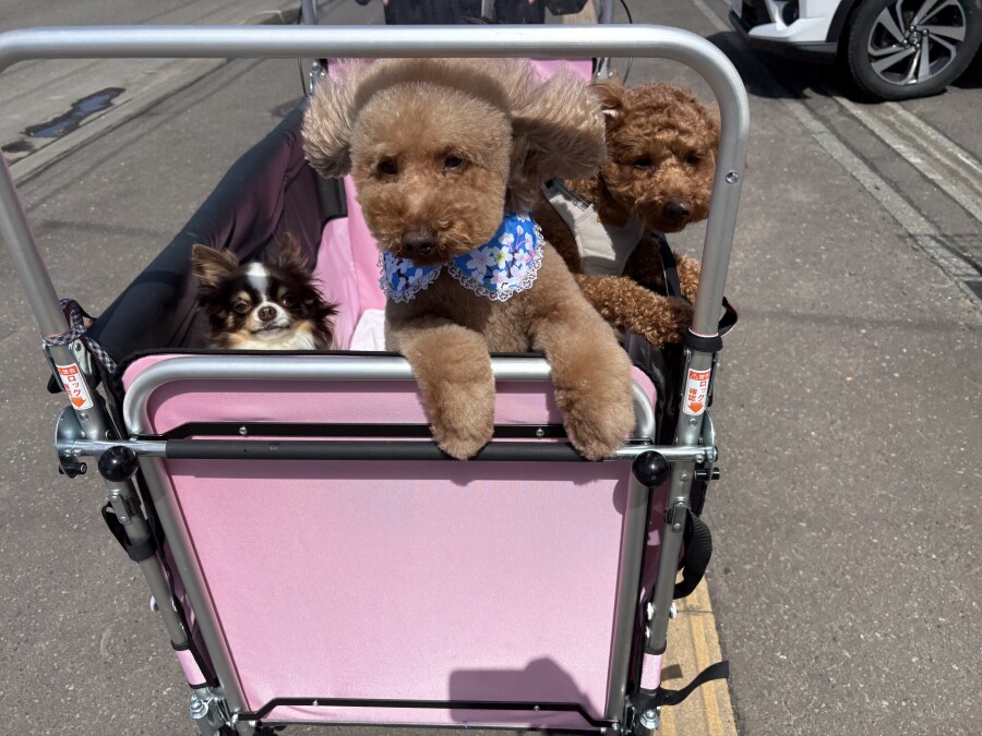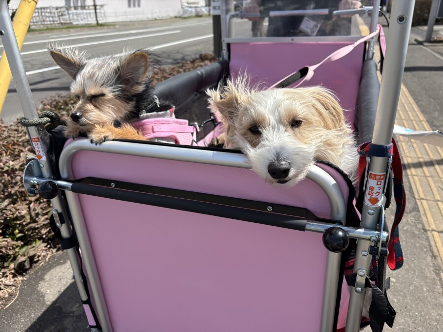 そんな中でも目をしぱしぱさせながら、カートから一生懸命お顔を出して外を眺める園児の姿が‥笑